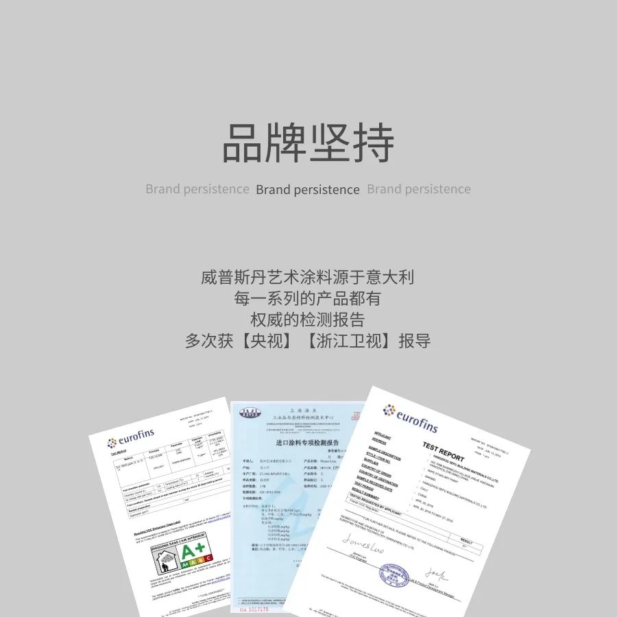 威普斯丹藝術(shù)涂料也獲得了法國(guó)A+等國(guó)際檢測(cè)等認(rèn)證,實(shí)現(xiàn)產(chǎn)品趨零VOC,揮發(fā)有機(jī)物低的高標(biāo)準(zhǔn)。